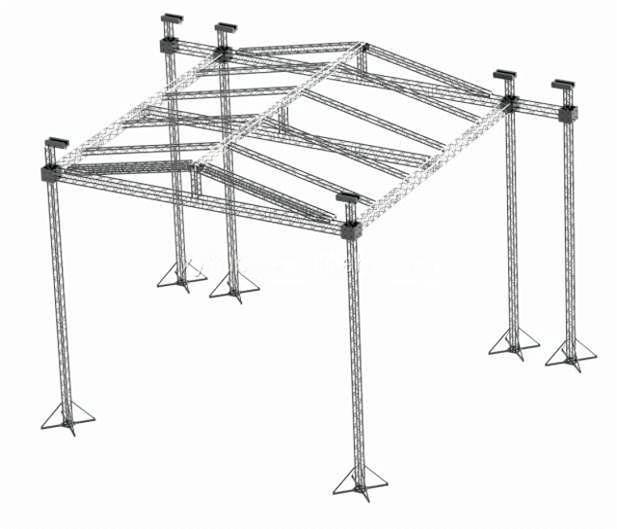 Sistema de treliças de alumínio para telhados de eventos ao ar livre.
