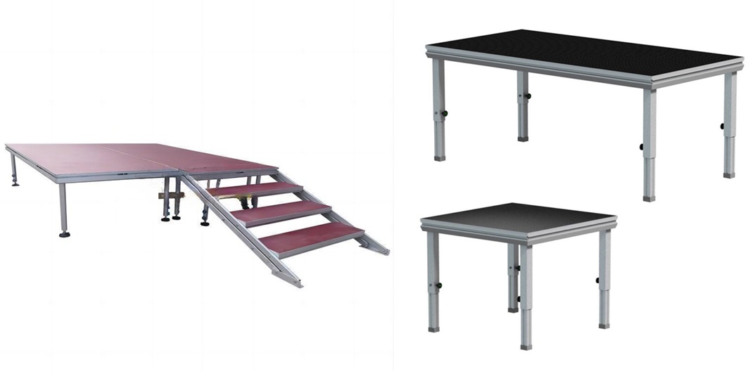 - A plataforma pode ser facilmente ampliada ou reduzida em tamanho para acomodar diferentes configurações de palco e requisitos de eventos. Essa versatilidade permite maior flexibilidade na seleção do local e no design do palco.